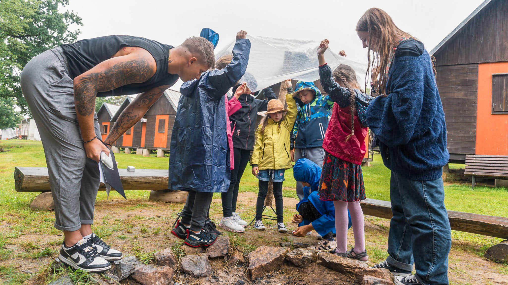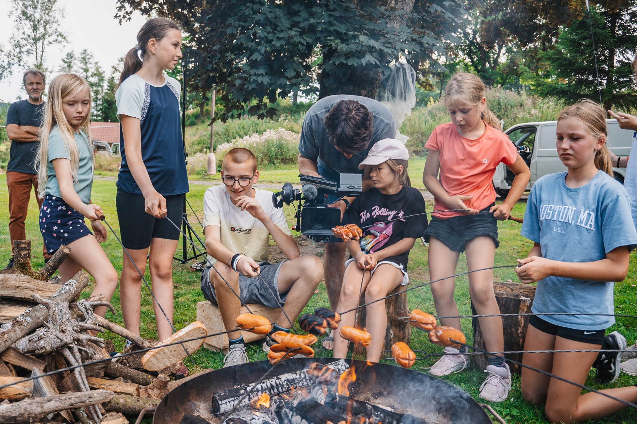 s kamerou. Odpoledne patří hrám, sportu, koupání a pobytu v přírodě. Večery uzavírá zábavný program, táborák nebo talk show